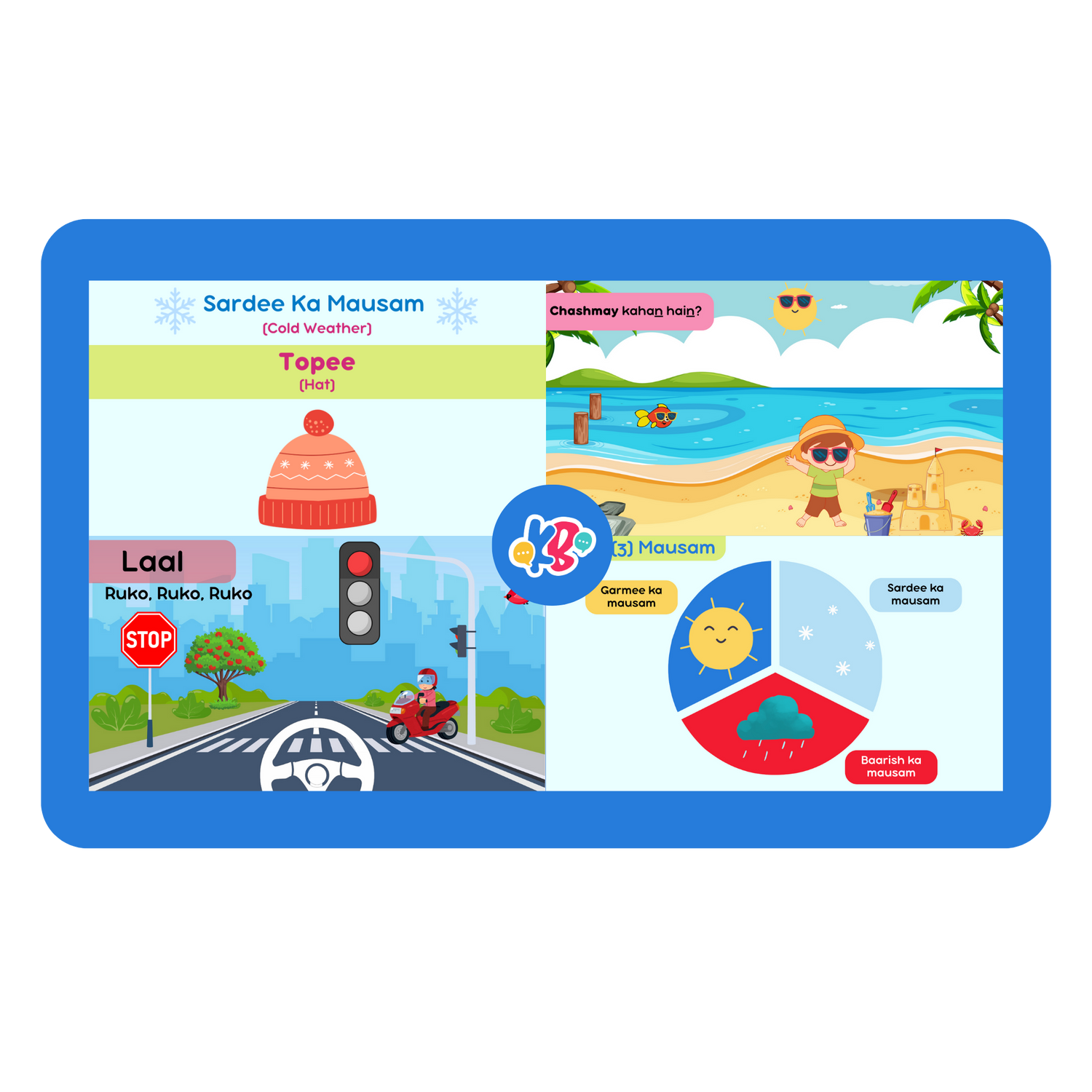 Lessons include interactive slides, stories, and games to keep kids engaged while building real-life communication skills in Urdu.